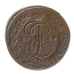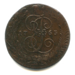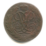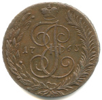 5 копеек — Вензель императрицы Екатерины II Великой. Москва 1763 ММ. Петров — 0,75 рубля