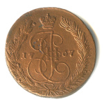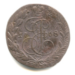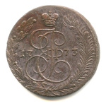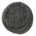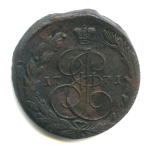 5 копеек — Вензель императрицы Екатерины II Великой. Орел 1768 г. Екатеринбург 1773 ЕМ