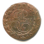 5 копеек — Вензель императрицы Екатерины II Великой. Орел 1768 г. Екатеринбург 1771 ЕМ