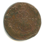 5 копеек — Вензель императрицы Екатерины II Великой. Орел 1768 г. Екатеринбург 1770 ЕМ