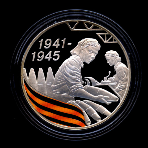 3 рубля — Женщина, укладывающая снаряды. 65-я годовщина Победы в Великой Отечественной войне 1941−1945 гг. Cпециальное исполнение — В капсуле, с серти…