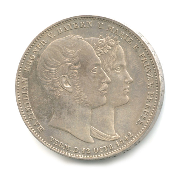 2 талера — Брак наследного Принца Баварии и Мари (Юбилейная монета) 1842. В капсуле (Бавария)