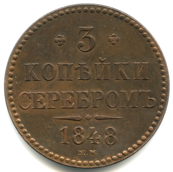 3 копейки серебром 1848 МW. Ильин — 20 рублей (Российская Империя)