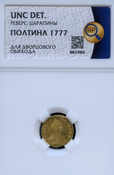 Полтина (50 копеек) — Для дворцового обихода. Портрет Екатерины 1777. В слабе - (Российская Империя)