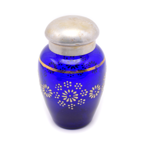 Емкость для хранения чая (чайница), украшенная цветочным декором, стекло, роспись, металл. Размер 7×11 см (СССР)