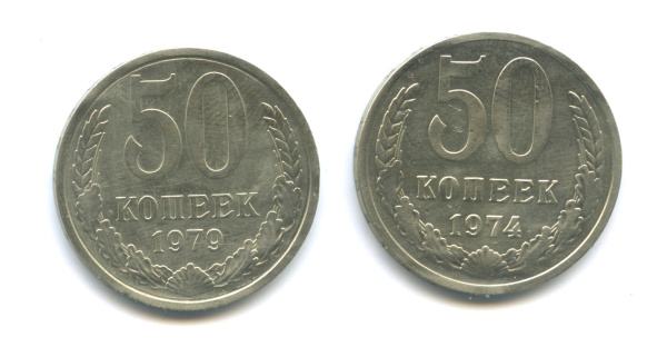 Лот монет «50 копеек 1974,1979 гг». 2 шт (СССР)