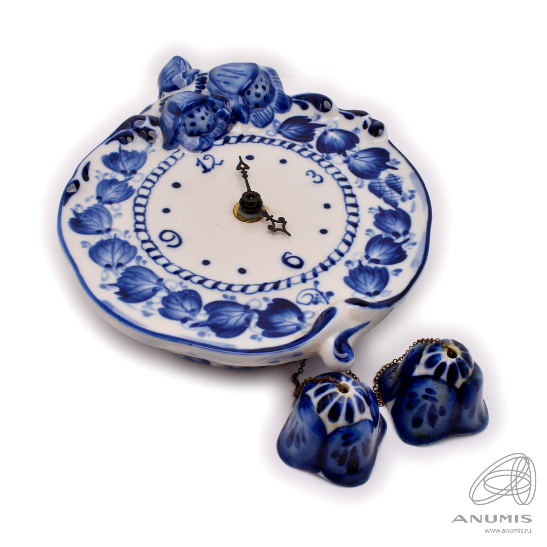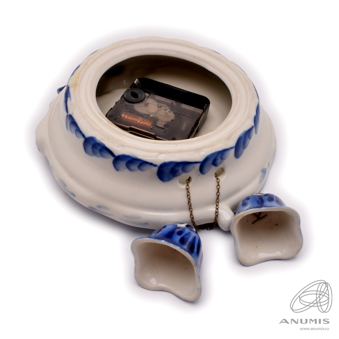 Часы настенные. Фарфор. ⌀ 16 см. Гжель. Рабочие, на батарейке