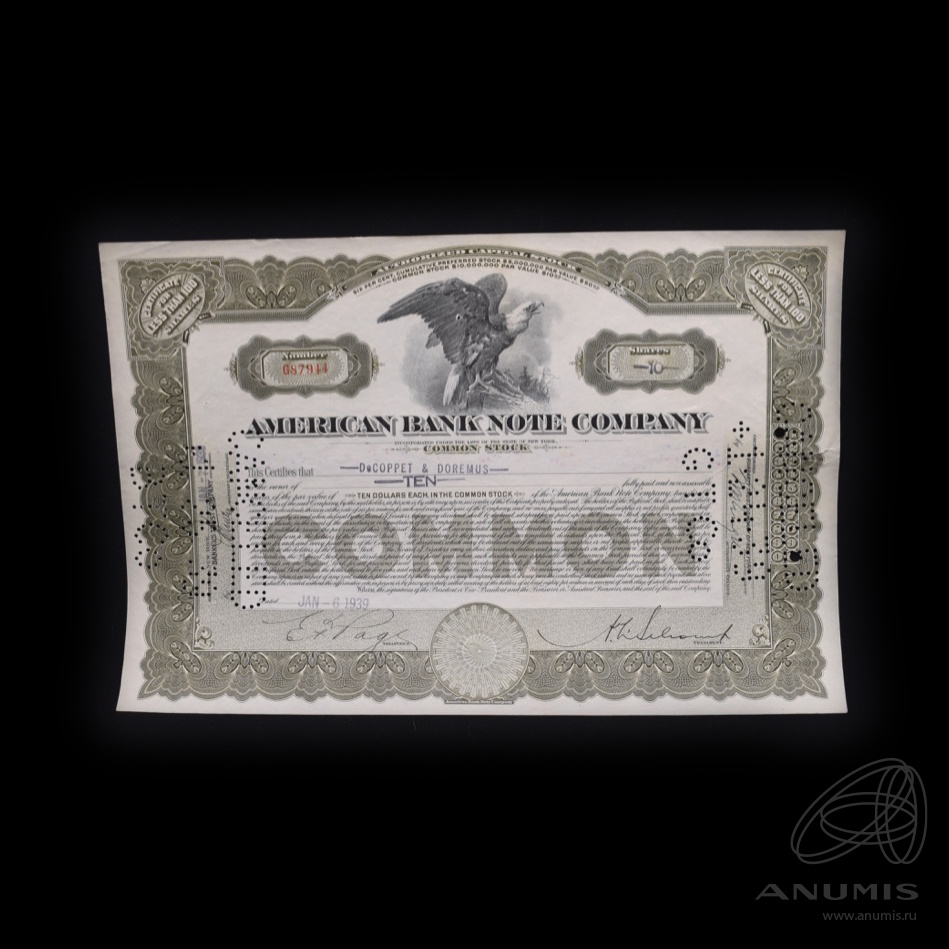 10 акций «American Bank Note Company» 1939