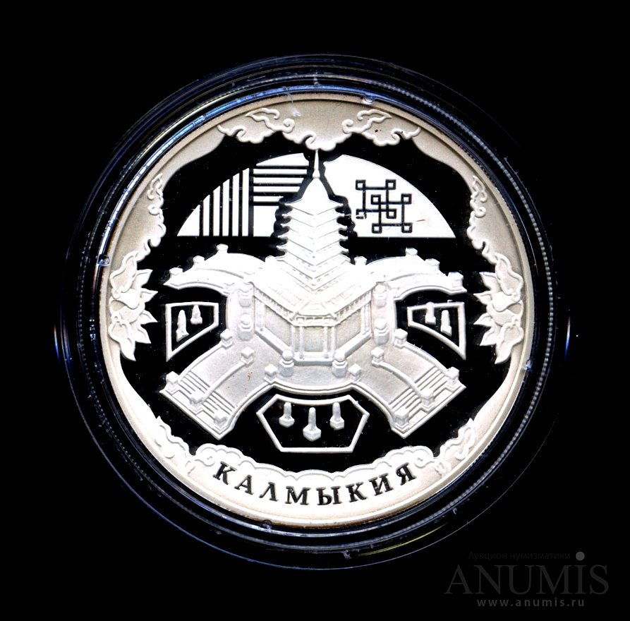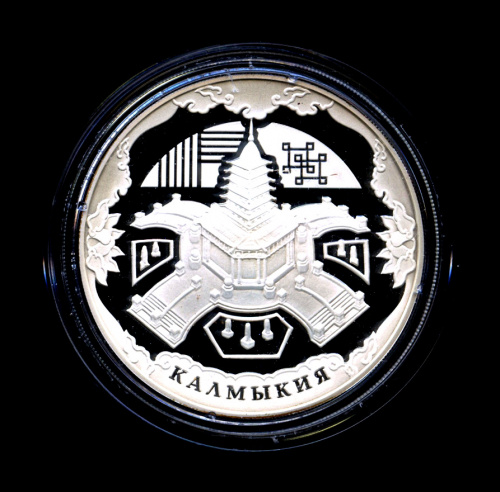 Юбилейная монета: 3 рубля 2009 года «400-летие добровольного вхождения Калмыкии в Россию». 400-летие вхождения Калмыкии в состав России. Российская Федерация: Россия современная (1997 — 2020). Монетный двор: Московский монетный двор, г. Москва. Серебро 925, 34 г, ø 39 мм, Гурт: Рубчатый. Каталожный номер: 5111−0182. Тираж: 5000 шт. Серия: Историческая серия: К 400-летию добровольного вхождения калмыцкого народа в состав Российского государства.