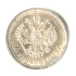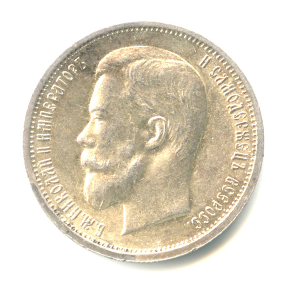 Монета регулярного выпуска: 50 копеек 1913 года «Портрет Николая II». 50 копеек 1895 — 1914 гг. Российская Империя: Николай II (1894 — 1917). Минцмейстер: Виктор Петрович Смирнов (1912−1917). Серебро 900, 10 г, ø 27 мм, Гурт: Надпись. Тираж: 6420017 шт.