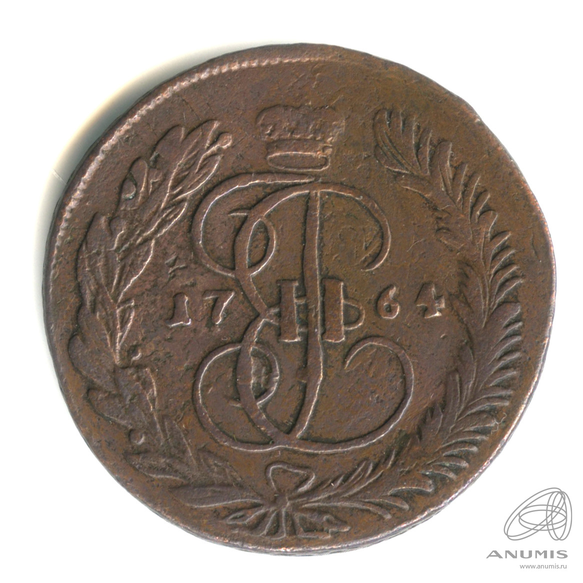 5 копеек — Вензель императрицы Екатерины II Великой. Москва 1764 ММ