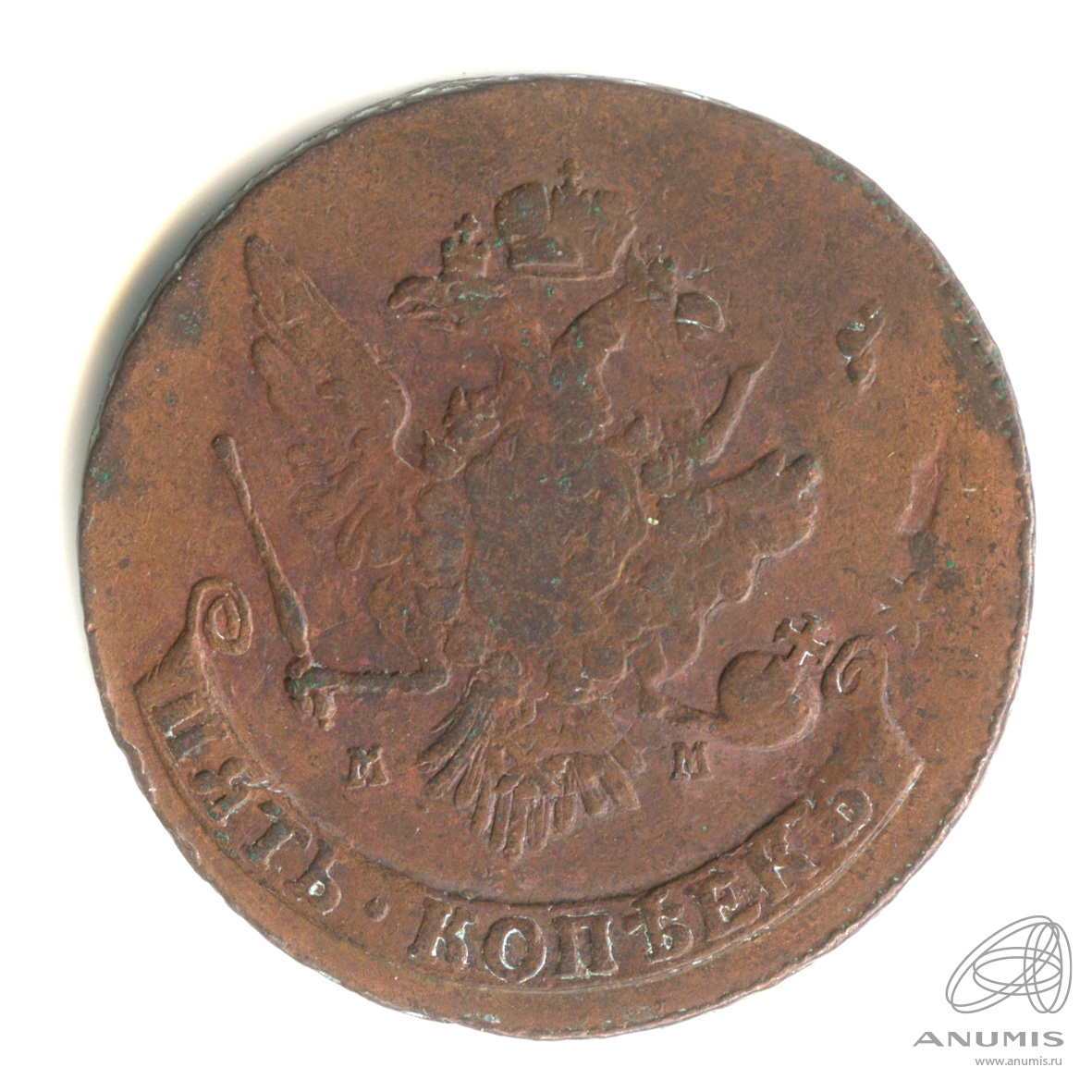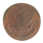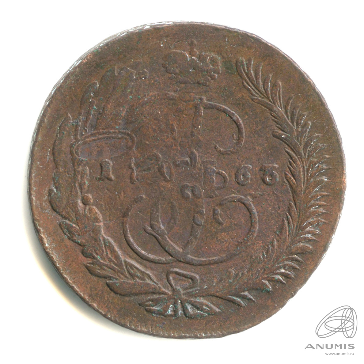 5 копеек — Вензель императрицы Екатерины II Великой. Москва 1763 ММ. Петров — 0,75 рубля