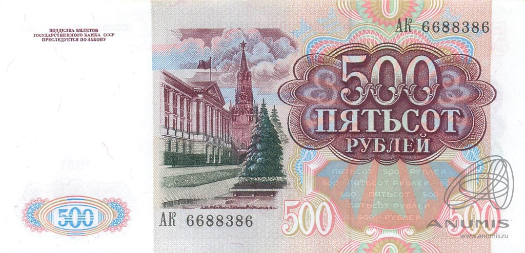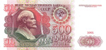Банкнота регулярного выпуска: 500 рублей 1991 года. Билеты Государственного Банка СССР 1991 г. Союз Советских Социалистических Республик: Госбанк СССР (1991 — 1992).
