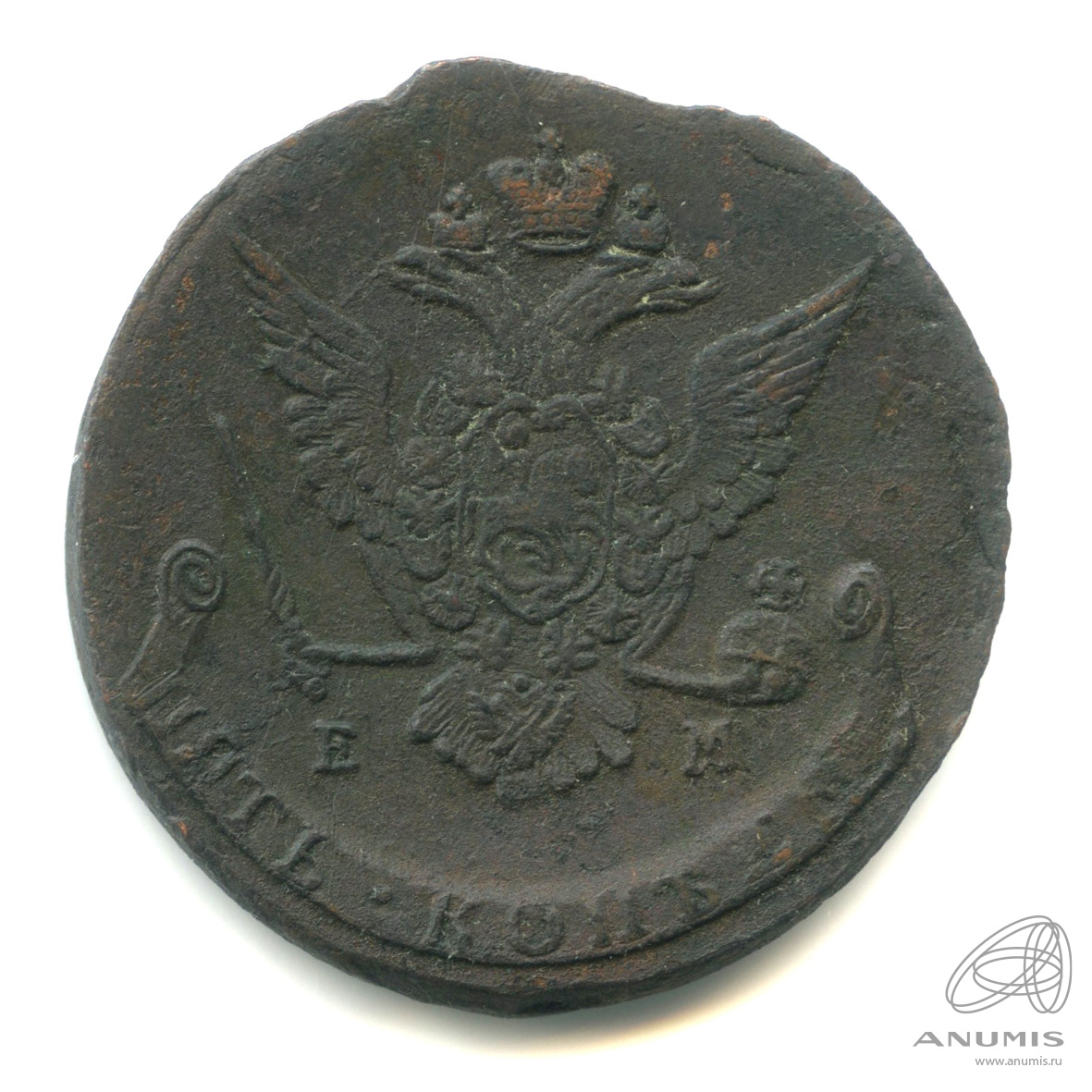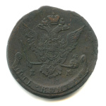 5 копеек — Вензель императрицы Екатерины II Великой. Орел 1768 г. Екатеринбург 1771 ЕМ