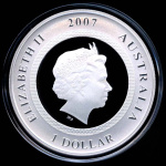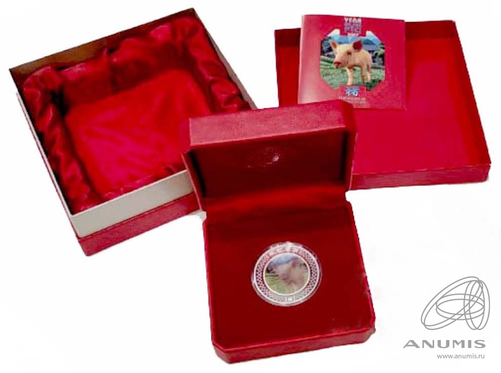 1 доллар — Год свиньи /голограмма/. Китайский гороскоп. (Коллекционная монета) 2007. В капсуле, с сертификатом. В коробочке и в подарочном боксе с тканевым ложементом