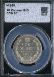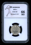 20 копеек — Орел 4 типа 1913 СПБ ВС. В оригинальном сертифицированном слабе MS 66