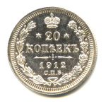 20 копеек — Орел 4 типа 1912 СПБ ЭБ. Яркий штемпельный блеск