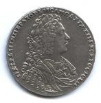1 рубль — Портрет Петра II. Голова не разделяет надпись. Со звездой на груди 1728