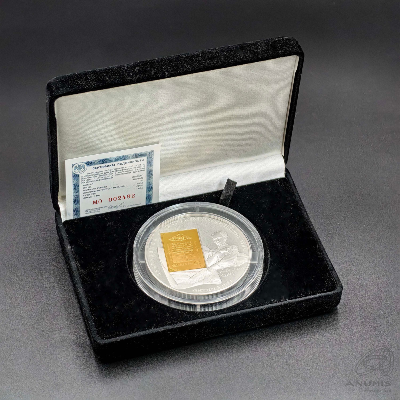 25 рублей — 190-летие Федерального государственного унитарного предприятия «Гознак» 2008 СПМД. Вставка — золото 999* 4,66 гр. С сертификатом, в коробке. Банковская сохранность монеты