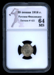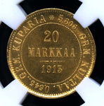 20 марок — Для Финляндии 1913 S. В оригинальном сертифицированном слабе® MS 64