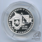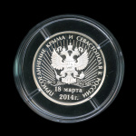 Жетон монетовидный «„„„„Присоединение Крыма и Севастополя“. Серебро 925 проба. ММД. В капсуле. Референдум о статусе Крыма и Севастополя“ 2014 маленький тираж““»"". в капсуле