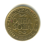 Проездной жетон Октябрьской железной дороги «Одна зона». Al/Br