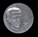 Настольная медаль в оригинальной коробке «Герой Советского Союза разведчик Н.И.Кузнецов». Редкая. Алюминий. ⌀ 5,8 см. В пластиковом футляре