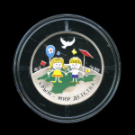 Жетон памятный «Воссоединение Крыма и Севастополя с Россией. Крым — Мир детства». ⌀ 3 см. цветной, в капсуле, проба 925