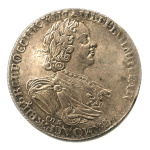 1 рубль — Портрет Петра I Солнечный. В латах. СПБ под портретом. 1725 СПБ