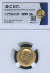 5 рублей — Портрет Николая II 1904 АР. В оригинальном сертифицированном слабе® MS 66