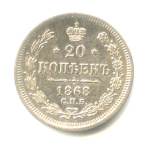 20 копеек — Орел 3 типа 1868 СПБ НI