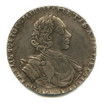 1 рубль — Портрет Петра I Крестовик. С пальм. ветвью. 1722