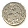 20 копеек — Орел 2 типа. Корона больше 1823 СПБ ПД
